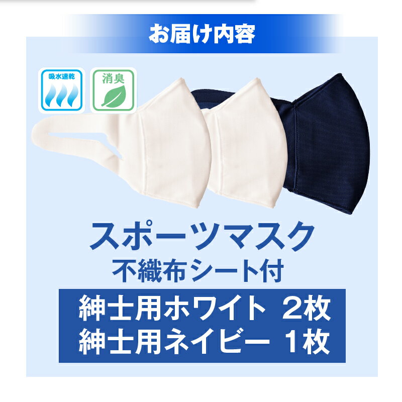 【ふるさと納税】スポーツマスク(伸縮素材使用の日本製マスク)紳士用ホワイト×2枚+紳士用ネイビー×1枚セット 紳士用 スポーツ スポーツマスク 速乾性 消臭機能付き 日本製 ギフト プレゼント 職人 手作り 香川県 伸縮素材 国内 国産 レガン おすすめ