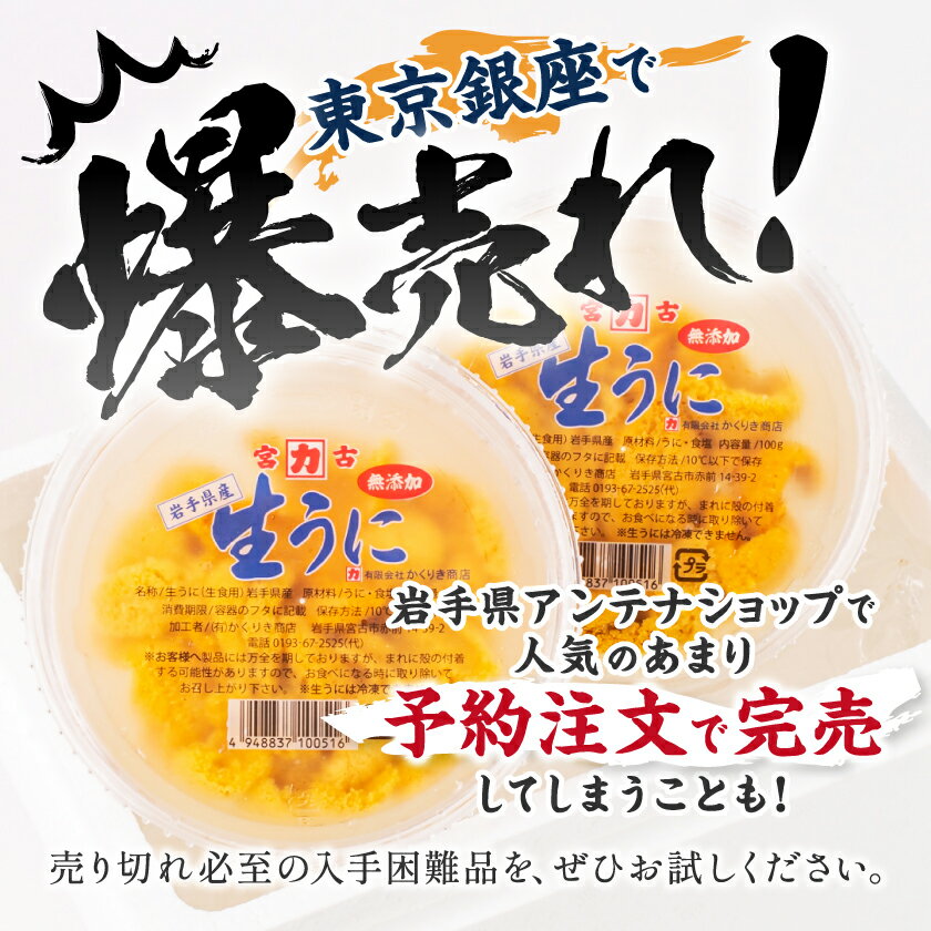 - 【ふるさと納税】天然生うに100g×1パック岩手県産 ミョウバン不使用【配送不可地域:離島・沖縄県・九州】【1625389】