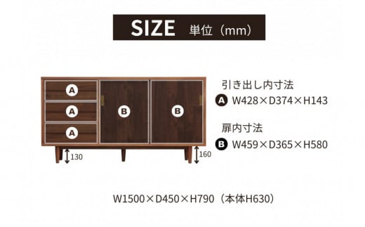 - 大川家具 幅150cm サイドボード 欅無垢材 -montana-モンタナ