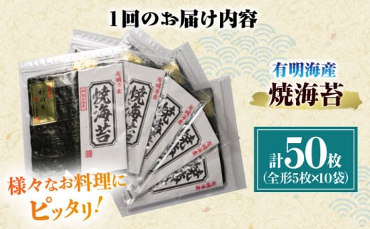 - 【全6回定期便】初摘み新海苔 焼海苔10袋セット 全形5枚×10袋 福岡有明のり <木村食品> 那珂川市 [GFW036]