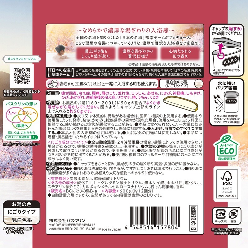- 入浴剤 セット バスクリン 4個 セット にごり湯 日本 名湯 極みの湯 温泉 疲労 回復 お風呂 日用品 バス用品 バブル 静岡県 藤枝市 [PT0123-000085]