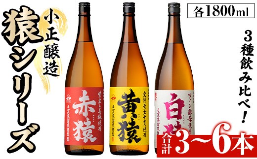 No.095/097 <本数選べる>赤猿・黄猿・白猿の1升瓶1800ml(3本~6本) 酒 焼酎 薩摩 芋 麹 アルコール 飲み比べ セット 1升 瓶 一升瓶 ギフト 贈答 常温 常温保存【小正醸造】