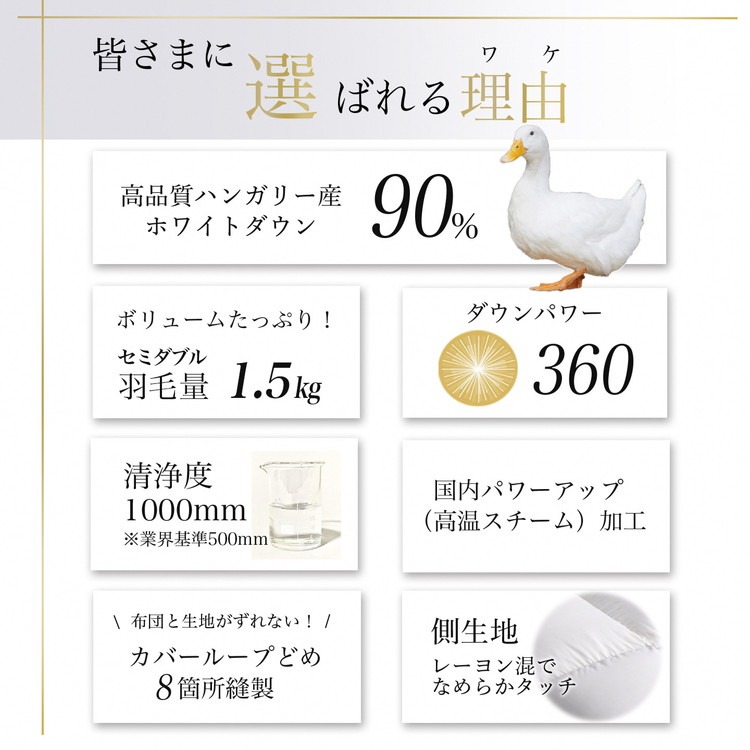 【アンバーホワイト(無地)】京都金桝 冬用羽毛布団 セミダブルサイズ×1枚 無地 シンプル 【ふとん 布団 寝具 国産 日本製 羽毛布団 羽毛ふとん 羽毛ぶとん うもうぶとん うもうふとん 本掛け 羽毛布団セミダブル 掛け布団 掛布団】アクア