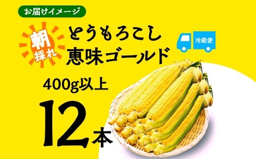 - とうもろこし 恵味 ゴールド 400g以上 × 12本 高糖度 トウモロコシ スイートコーン 玉蜀黍 イエローコーン 黄 夏野菜 甘い ジューシー 野菜 おやつ 旬 産地直送 送料無料 湖南野菜出荷組合 山梨県 富士河口湖町 FEM004