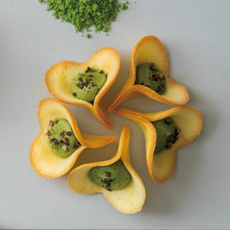KINEELの人気商品、ルフルの詰合せがもらえます。バニラと抹茶の2種類が各10個ずつ入ったギフトボックスです。お花の形をしたラングドシャに、ふんわりとしたクリームが挟まれています。バニラは甘酸っぱいイチゴをのせたクリーム、抹茶は京都府産の抹茶を使用したほろ苦いクリームが特徴です。見た目も華やかで、贈り物としても喜ばれる一品です。家族や友人と一緒に楽しむのにぴったりのスイーツです。