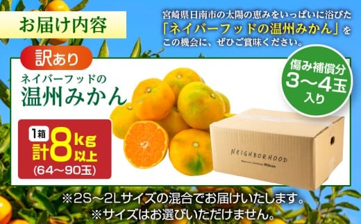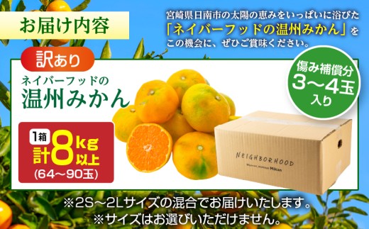 - 訳あり ネイバーフッド 温州みかん 計8kg以上 傷み補償分付き 期間限定 数量限定 フルーツ 果物 くだもの ミカン 柑橘 オレンジ 人気 国産 食品 デザート おやつ おすすめ 産地直送 ご家庭用 おすそ分け 特産品 宮崎県 日南市 送料無料_BB154-25