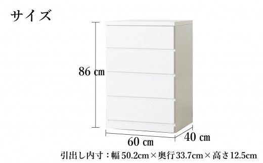60cm幅4段(奥浅タイプ40cm) 押し入れ 収納 キャスター 収納 引き出し 棚 収納棚 おしゃれ 幅60cm 奥行40cm 高さ86cm スフレ(ホワイト)