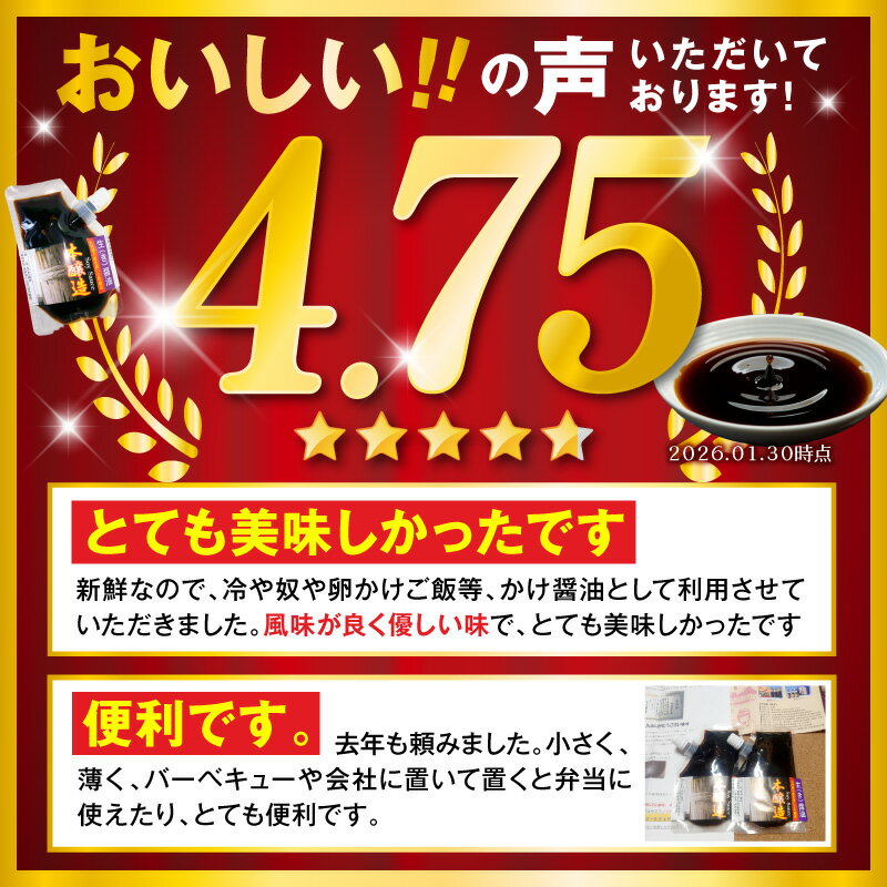 - 【ふるさと納税】高評価★4.74 醤油 生醤油 90ml × 2個 セット 計 180ml 国産小麦 自家焙煎 長期熟成 パウチ 入り 醤油麹 本醸造 2年醸造 手作り 自慢の味 ポスト投函 大豆 調味料 加工品 宮崎工業試験場 醤油官能検査 優秀 宮崎県 延岡市 お取り寄せ 送料無料
