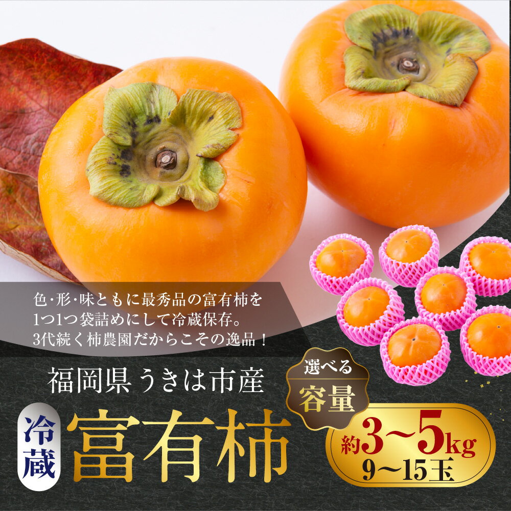 - 【ふるさと納税】〈選べる容量〉西見柿農園 冷蔵富有柿 9玉から11玉・12玉から15玉 2025年12月中旬から2026年1月下旬 出荷予定 柿 かき カキ フルーツ 果実 果物 冷蔵 送料無料 福岡県 うきは市