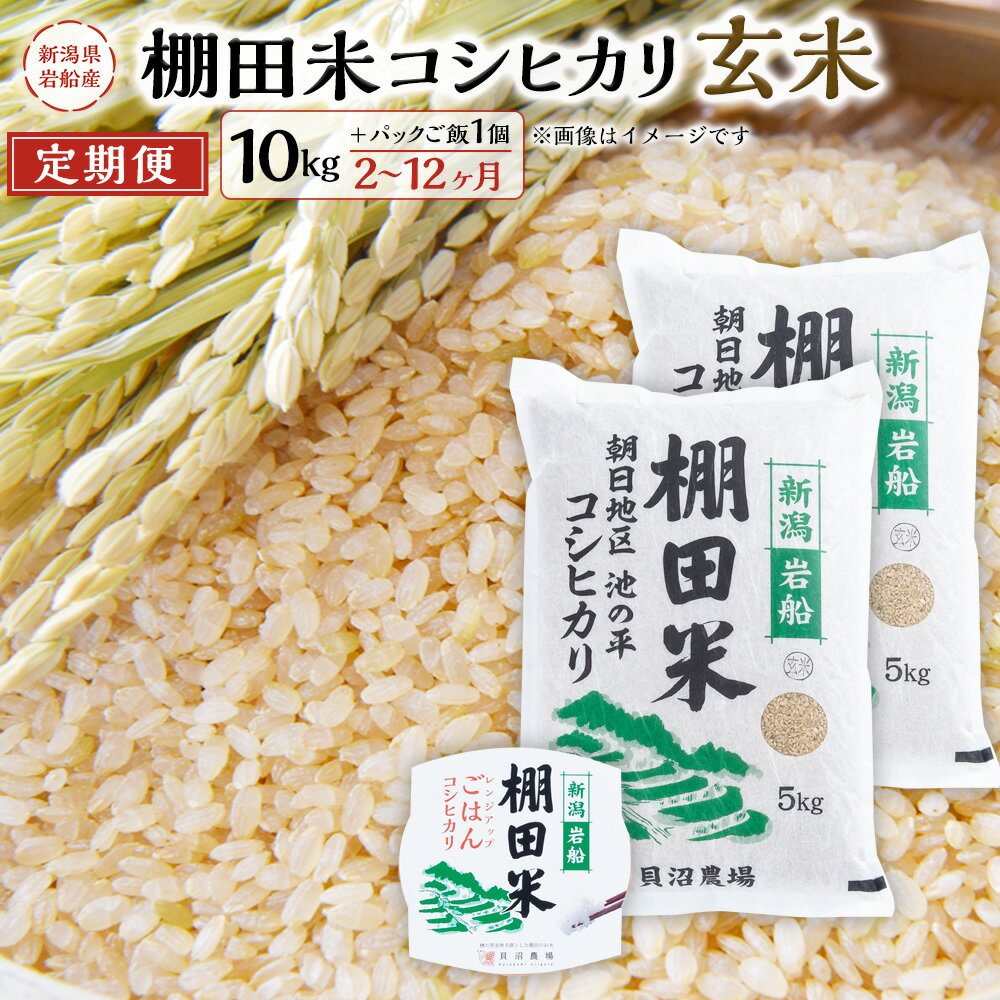【ふるさと納税】【新米受付・令和7年産米】【定期便】【お届け回数が選べる】 新潟県村上市岩船産 棚田米 コシヒカリ 玄米10kg + 棚田米コシヒカリのパックごはん (150g×1個)2・3・4・5・6・12回 | 毎月 お米 ご飯 こしひかり 1067123N