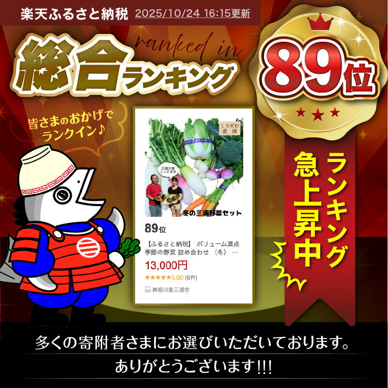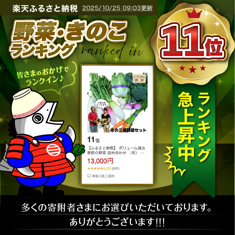 - 【ふるさと納税】 ボリューム満点 季節の野菜 詰め合わせ (冬) 三浦大根 大根 だいこん 野菜 冬野菜 青首 味一番 白菜 ブロッコリー 人参 カブ ケール ビーツ おいしい 期間限定 三浦野菜 旬のやさい くろぜむ農園 神奈川 三浦市 おすすめ ランキング プレゼント ギフト