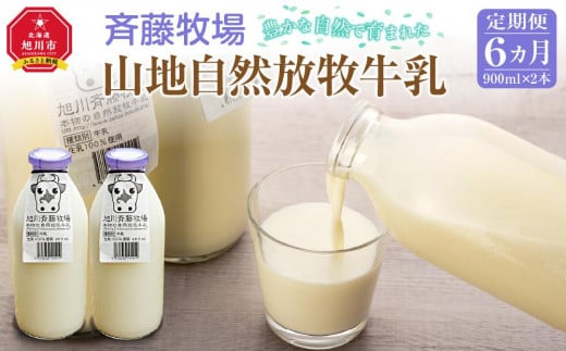 【6ヶ月定期便】斉藤牧場の山地自然放牧牛乳(900ml×2本×6回)