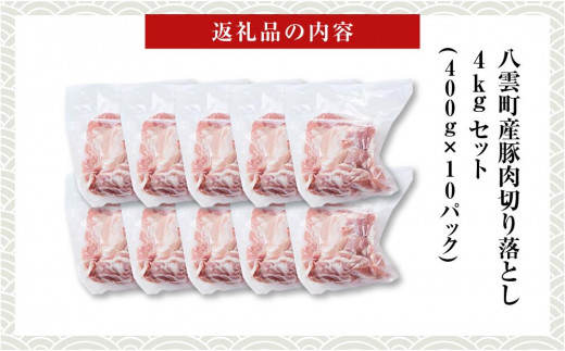 - 八雲町産豚肉切り落とし 4kgセット【 肉 にく ニク 豚肉 豚肉セット 冷凍豚肉 国産豚肉 北海道産豚肉 道産豚肉 簡単 お手軽 小分け こだわり豚肉 豚肉グルメ 八雲町 北海道 】