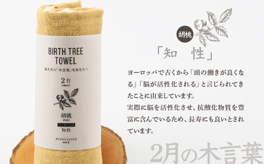 - 2月「胡桃(クルミ)」の木言葉 「知性」 BIRTH TREE TOWEL | RYOKUSUIEN 緑酔園 草木染め THE NEWOLD WORKS バースツリータオル クルミ 胡桃 知性 ガーゼ タオル ハンカチ ふわふわ 植物 草木染ガーゼ アップサイクル エシカル ヘリンボーン ギフト贈り物 お祝い プレゼント 母の日 父の日 記念日 埼玉県 草加市 草加