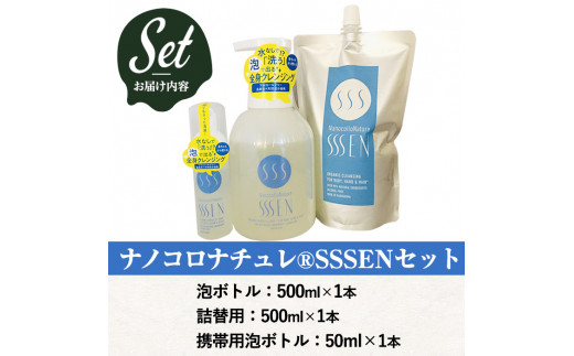 【令和7年お中元対応】手肌用泡タイプの洗浄液 セット(泡ボトル500ml+詰替用500ml+携帯用50ml 各1本)!ナノコロナチュレSSSENセット クリーナー 衛生品 化粧品 掃除 詰め替え 携帯 防災 災害 衛生用品【Nexting】【TA-248H】