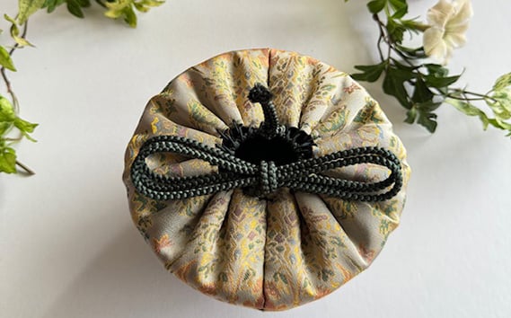 No.433 仕覆 茶道具 天目仕覆 鹿花卉鳥丸文 約27g / 鹿花卉鳥丸文 職人 手作業 手作り 愛知県