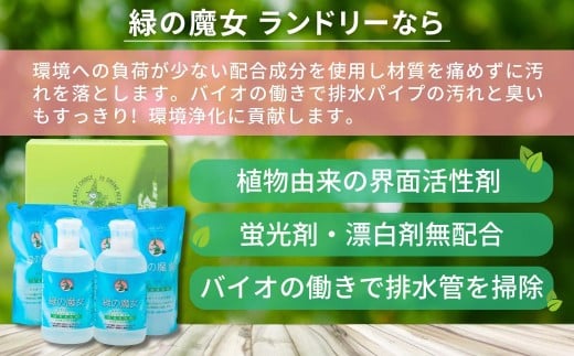 液体洗剤 緑の魔女ランドリー 820ml×2+620ml×4 | 洗濯用洗剤 洗濯液体洗剤 洗濯 洗剤 液体洗濯洗剤 衣類用洗剤 環境配慮 植物由来 天然素材 ヤシ油 エコ 環境にやさしい 油汚れ 皮脂 皮脂汚れ 詰替え つめかえ 詰め替え大容量 大容量容キャップ付き パイプ パイプクリーナー 排水口 除菌 防臭 お歳暮 ギフト 洗浄力 茨城県 龍ケ崎市
