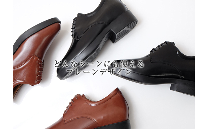 - ビジネスシューズ 本革 革靴 カンガルー革 紳士靴 外羽根プレーン 7cmアップ シークレットシューズ No.233 ブラック [№5990-0335]