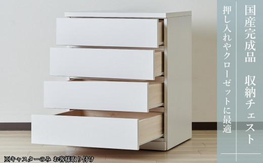 - 80cm幅4段(奥浅タイプ40cm) 押し入れ 収納 キャスター 収納 引き出し 棚 収納棚 おしゃれ 幅80cm 奥行40cm 高さ86cm スフレ(ホワイト)