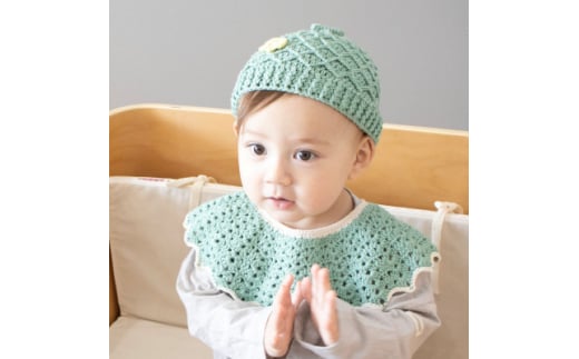 - HOPPL(ホップル)手編みニットビブ&キャップセット(メロン/サイズM)【1626201】