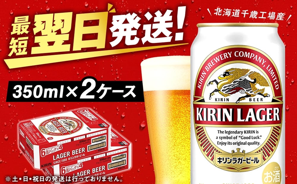 キリンラガービール<北海道千歳工場産>350ml 2ケース(48缶)