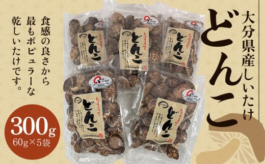 大分県産しいたけ 「どんこ」 300g(60g×5袋)