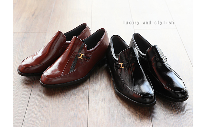 - カンガルー革 ビジネスシューズ 紳士靴 Uモカ スリッポン 5cmアップ 4E ワイド No.635 ブラウン [№5990-0345]