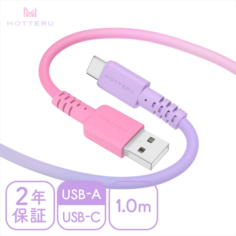 しなやかで絡まない シリコンケーブル 急速充電 データ転送対応 USB-A to USB-C 1m 2年保証(MOT-SCBACG100) スモーキーブラック【 MOTTERU ガジェット 充電ケーブル スマホケーブル 海老名市 】