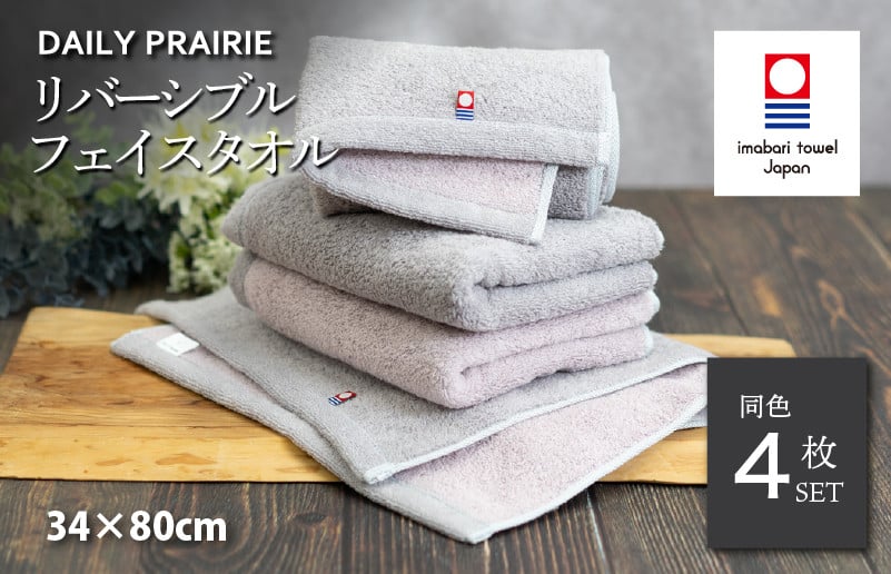 - (今治タオルブランド認定品)DAILY PRAIRIE リバーシブルフェイスタオル 4枚セット (チャコールグレー/ダスティピンク) [I002940FT4CGY/DP] 今治タオル タオル 今治フェイスタオル ギフト ギフトセット お祝い 贈り物 日本製