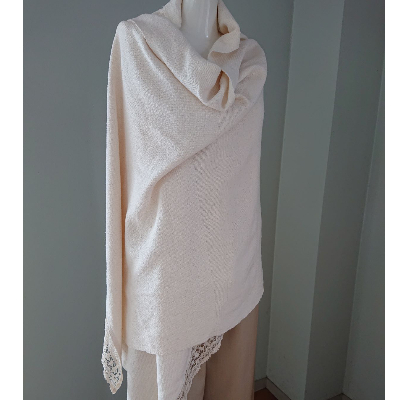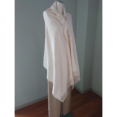 - 手織 シルクひざ掛けストール(おくるみ) シルクレース付き【丹後シルク】