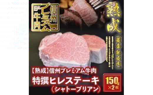 - 144【熟鮮】信州プレミアム牛肉 特撰ヒレステーキ(シャトーブリアン)150g×2枚 冷蔵発送!