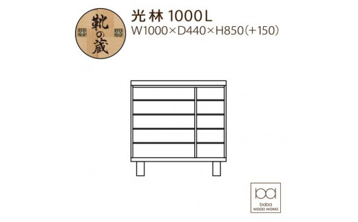 - 大川家具 シューズボックス 光林1000L 幅100cm 靴箱 収納