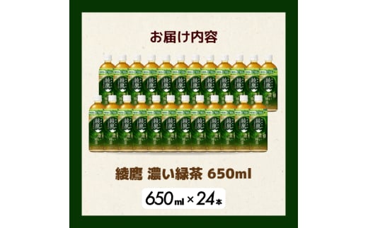 - 綾鷹濃い緑茶650ml 24本 PET 最短3日で発送 ペットボトル お茶 飲料 箱買い まとめ買い 防災 備蓄 014093
