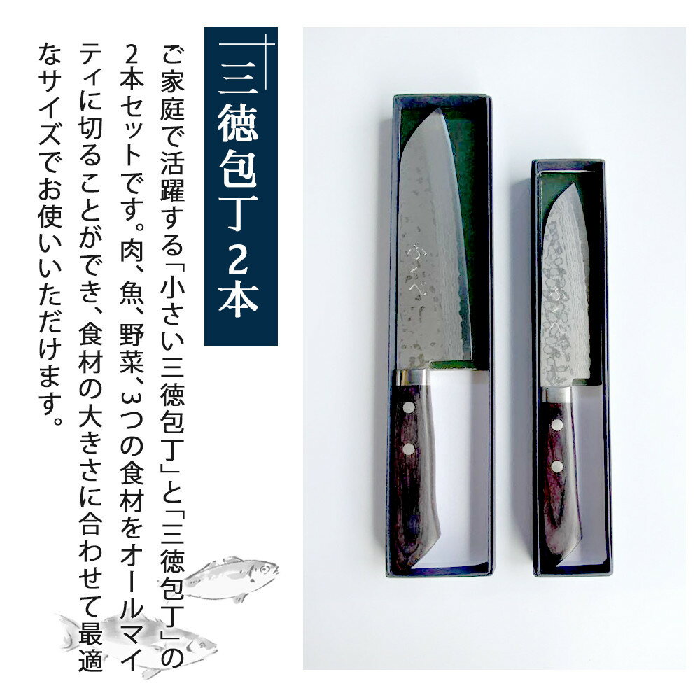 【ふるさと納税】【復興支援】港町の鍛冶屋 三徳包丁2本(ダマスカス鋼V金10)170mm・135mm