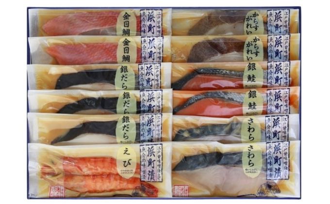 江戸甘味噌仕立て 浜町漬 12点セット RH100F 魚介類 漬魚 味噌漬 魚 真空パック 焼くだけ おかず お弁当 金目鯛 銀鮭 銀だら 味噌漬 12パック