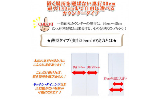 - カウンター下収納 引き出し 奥行30 幅140cm カウンターテーブル ランドリー収納 キッチンカウンター 薄型 国産 ミラノ