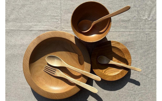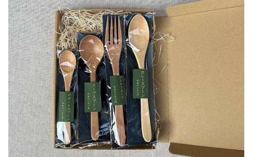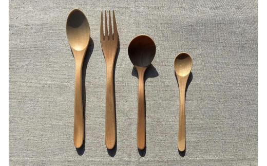 - <湯布院・カトラリー専門 甲斐のぶお工房>木製 スプーン・フォーク 4点セット(カレー・スープ・デザート・パスタ用)