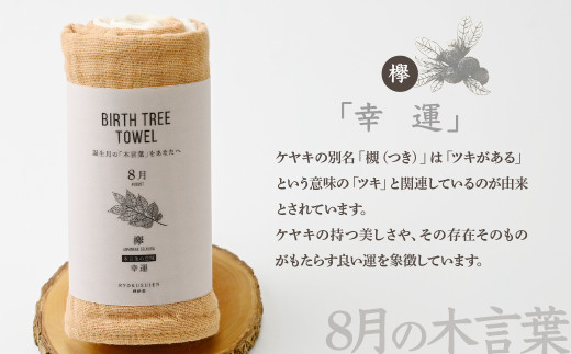 - 8月「欅(ケヤキ)」の木言葉 「幸運」 BIRTH TREE TOWEL | RYOKUSUIEN 緑酔園 草木染め THE NEWOLD WORKS バースツリータオル ケヤキ 幸運 誕生日 誕生月 ガーゼ タオル ハンカチ ふわふわ 植物 草木染ガーゼ アップサイクル エシカル ヘリンボーン ギフト贈り物 お祝い プレゼント 母の日 父の日 記念日 埼玉県 草加市 草加