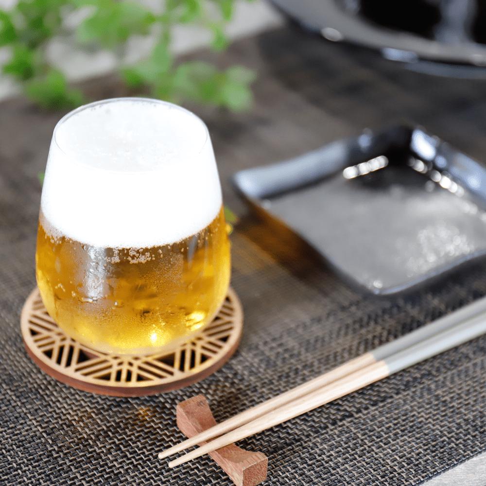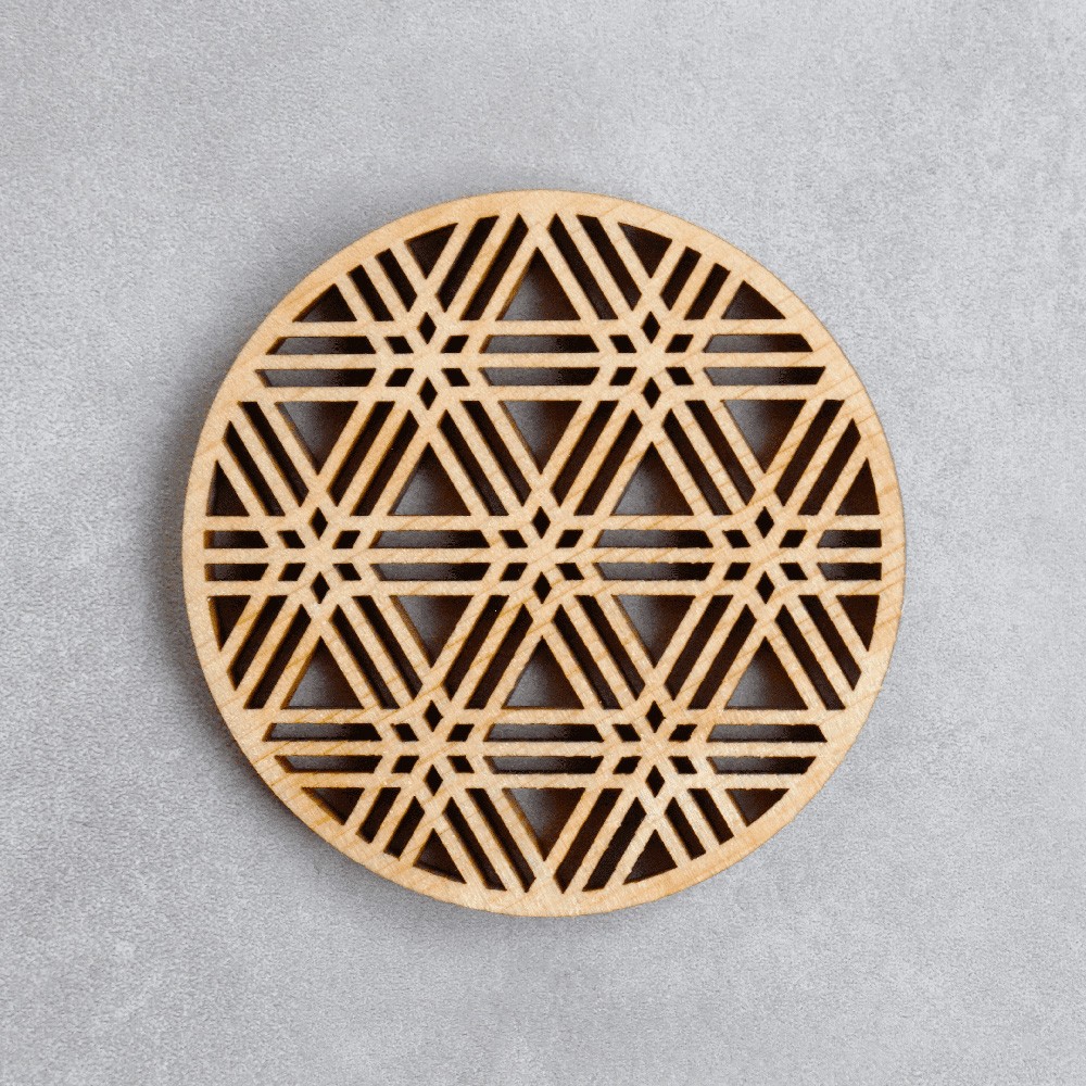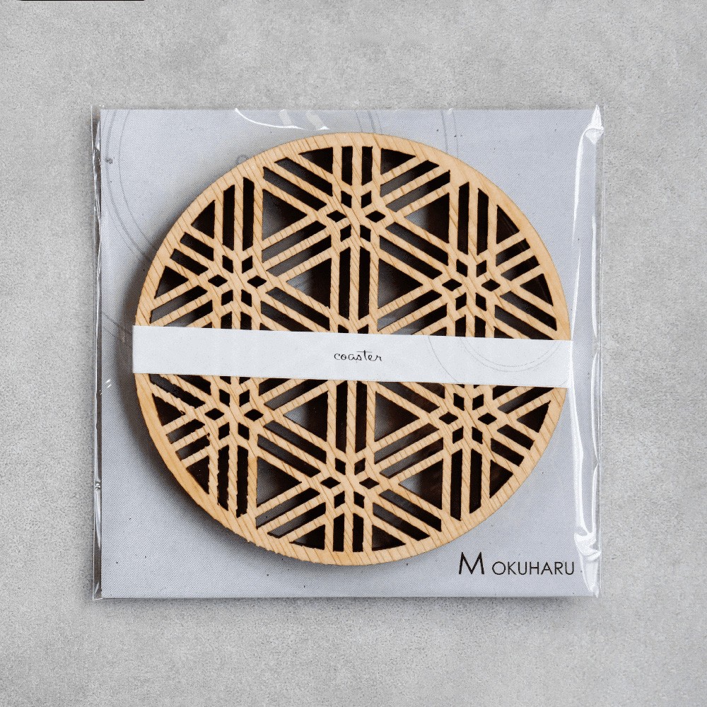 - M239 紀州材ひのきの和柄コースター 胡麻格子 くりぬきあり