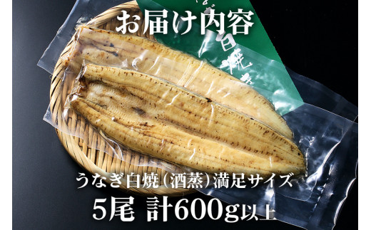 満足サイズ! 国内産 うなぎ 白焼 ( 酒蒸 ) 120~140g 5尾 計600g以上 ふっくら 柔らか 鰻本来の旨味 ワサビ醤油 蒲焼のタレ 山椒付き 湯煎 簡単調理 贈答用 ギフト 冷蔵配送 茨城県 潮来市 (A23-018)