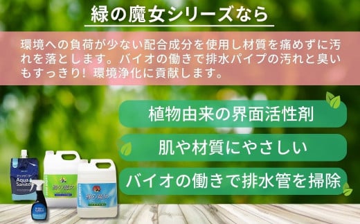 - 緑の魔女ランドリー5L+キッチン5L+アクアサニターセットC ふるさと納税限定 | 洗剤 液体 液体洗剤 環境配慮 エコ やさしい 洗濯 洗濯洗剤 衣類 汚れ よごれ 油汚れ 皮脂 皮脂汚れ キッチン キッチン用洗剤 パイプ パイプクリーナー 植物由来 除菌 除菌スプレー 防臭 エコ お中元 お歳暮 ギフト セット 大掃除 洗浄力 茨城県 龍ケ崎市