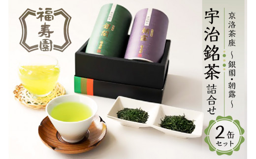 - 「福寿園」 京洛茶座 宇治銘茶詰合せ(2缶セット)銀閣 朝露 宇治茶詰合せ 緑茶セット 宇治茶ギフト 贈答 プレゼント 宇治茶セット 宇治茶飲み比べ カテキン 宇治 お茶 銘茶 京都 木津川 【067-05】