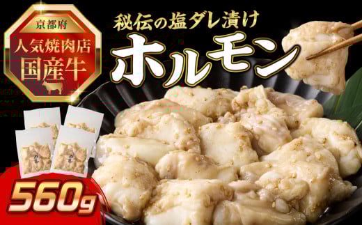 「京都人気焼肉店」プリプリホルモン!国産牛ホソの秘伝!塩ダレ漬け 140g×4個 560g ふるさと納税 国産牛 ホソ(小腸) ホルモン 小分け 冷凍 簡単調理 一品料理 牛肉 京都府 木津川市 【093-33】