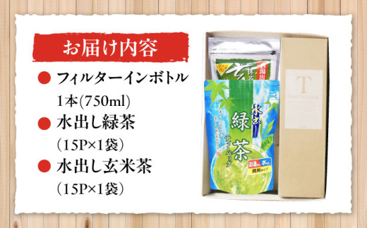 フィルターインボトル水出し緑茶・水出し玄米茶セット 滋賀県長浜市/株式会社浜宇治園 [AQBU005-2] 茶 ティーパック 緑茶 ほうじ茶 ボトル 水出し ティーバッグ テトラ型 水出し お茶