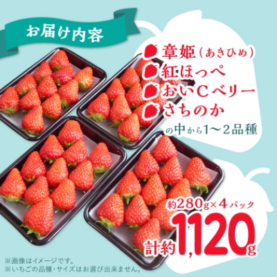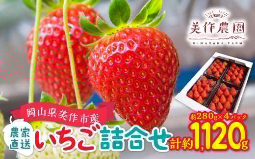 岡山県美作市産 いちご詰合せ(約280g×4パック)【配送不可地域:離島・北海道・沖縄県】