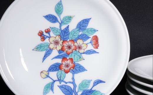- 【有田焼】重要無形文化財 今右衛門窯 色絵磁器 梨花絵 銘々皿(5枚組)