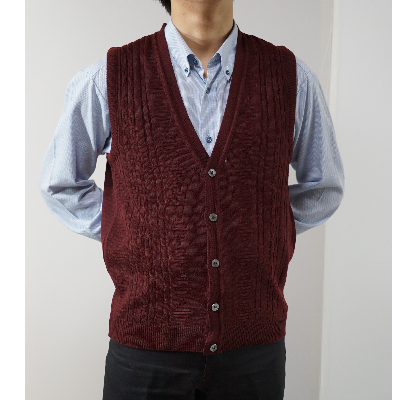 模様有 メンズニット オープンベスト ワイン L寸 15150【1219752】