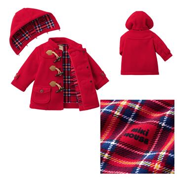 - 【ふるさと納税】H197 ミキハウス フリースダッフルコート(赤・紺) 90~120cm【mikihouse ダッフル コート アウター こども こども服 キッズ 冬 フリース 90 100 110 120 cm 赤 レッド 紺 ネイビー フード取りはずし 暖かい 大阪 八尾市】