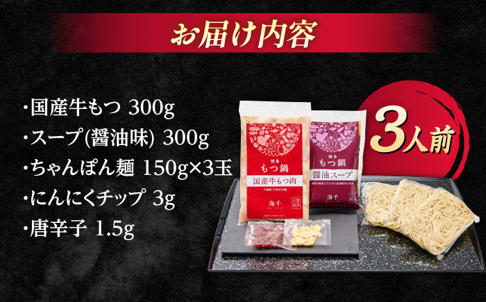 【ギフト用】 博多もつ鍋(醤油味)3人前那珂川市/株式会社 海千 [GGA012]