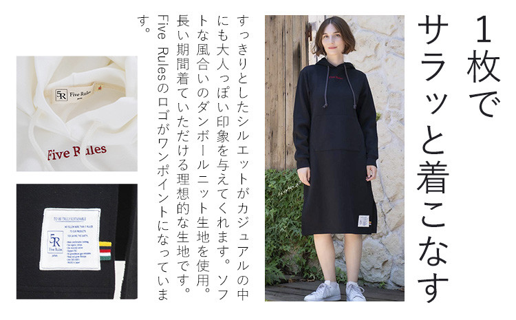 フード付きワンピース ブラック ホワイト free サイズ 株式会社アイガット《30日以内に出荷予定(土日祝除く)》和歌山県 岩出市 5R Five Rules ファイブルールズ スウェット ショート丈 トップス 綿 ワンピース